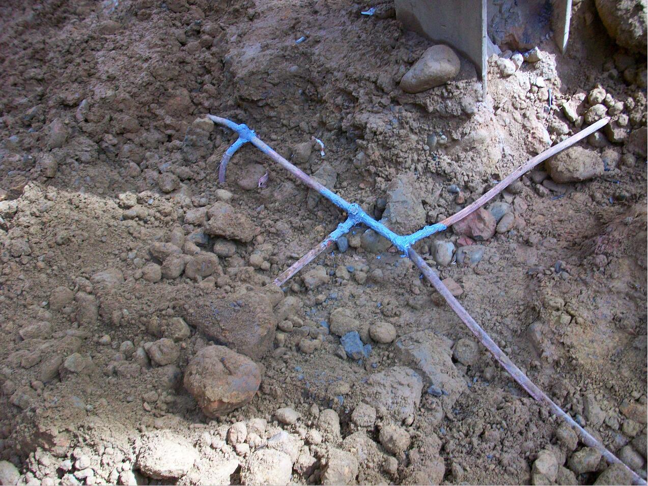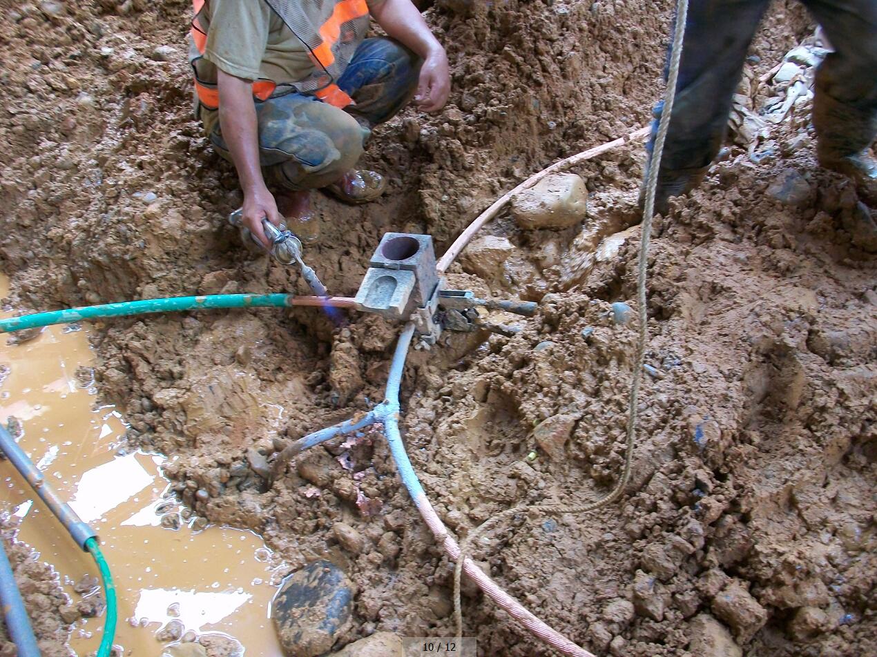 1.放样位置 2.洗孔A 3.洗孔B 4.置入铜管 5.引出导线A 6.引出导线B 7.倒入接地改良剂A 8.倒入接地改良剂B 9.单孔完成 10.连接A 11.连接B 12.接地测试