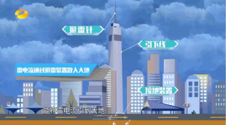 通常我们在建筑物顶端看到的避雷针、避雷网只是防雷设施中的接闪器,其作用是代替建筑物接收闪电,电流通过接闪器,引下线以及接地装置引入到大地,从而起到保护建筑物的作用。